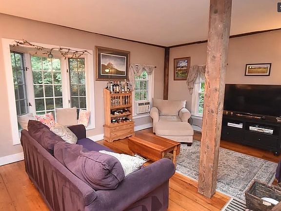 This gorgeous property in Belchertown blends timeless farmhouse charm with thoughtful modern updates. Built in 1875, this beautifully preserved post-and-beam home offers 1,792 square feet of living space, featuring 3 bedrooms, 1 fully renovated bathroom, and wide-board pine floors throughout. The open concept living and dining areas are flooded with natural light, while the gourmet kitchen boasts quartz countertops, custom cabinetry, stainless-steel appliances, and a cozy breakfast nook. A sunlit family room with cathedral ceilings and French doors opens onto a large composite deck and fenced backyardideal for relaxing, gardening, or entertaining. Upstairs, three spacious bedrooms offer rustic charm and comfort. Outside, enjoy fruit trees, mature gardens, a shed, and plenty of privacy, all just minutes from in-town conveniences, Amherst College, UMass Amherst, hiking trails, and conservation area, including the Quabbin Reservoir . With modern systems including oil heat, first-floor laundry, and space for up to six vehicles, this home is perfect for those seeking New England character and peaceful living without sacrificing access to amenities. Owner pays for professional property management, electricity, snow removal, lawncare, and water/sewer. Tenant pays for heat, hot water, cable/Internet, and garbage/recycling.