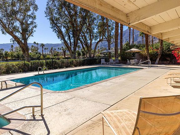 This home is located on the 15th on the De Anza Golf Course with 2 bedrooms and 2 baths and bonus room. Tongue and groove ceilings and rock fireplace in living room. Granite countertops in the kitchen with island bar. Back patio with pool and spa overlook the the golf course. Circle driveway with mature landscaping.