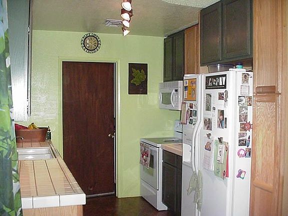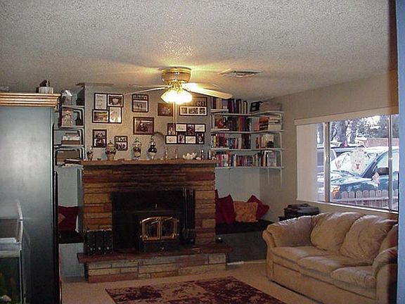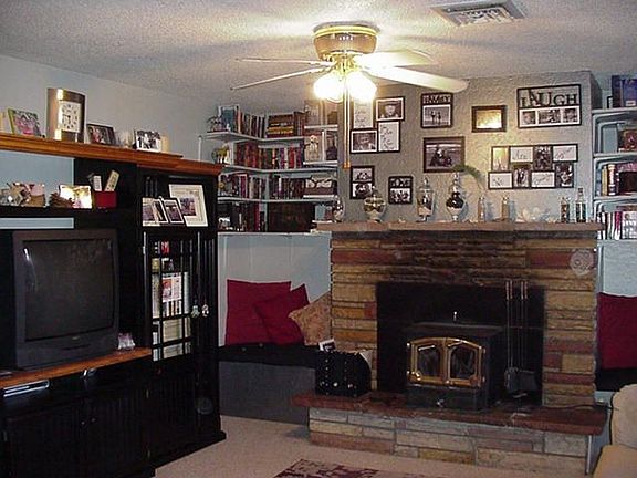 Large 2 Bedroom, 1 Bath with huge newly built attached 2 story Garage (24'x30'). Room above garage with skylights, window & storage. Kitchen recently remodeled With gorgeous custom oak cabinets, tile countertops, new flooring & track lighting. Ceramic tile in bathroom. Living room has a fireplace with mantel & a woodburning insert. Master Bedroom has his and her closets. Central, Natural Gas, forced air heating system. Separate Laundry Room. New exterior & interior paint. Located in the middle of town. Close to Schools, Shopping and Local Activities Ideal for 2nd home or first time home owner. All measurements are approximate.