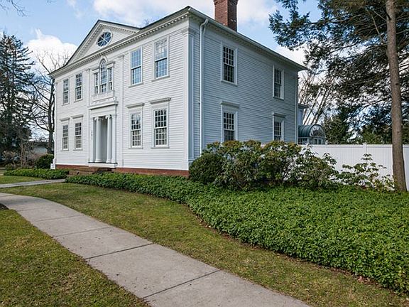 The Historic District of Scenic Suffield, CT boasts the home of a Gracious Federal built circa 1800 at 281 North Main St. This home has been impeccably maintained, tediously preserved and a landmark piece of history that deserves to be enjoyed by family and friends. The Ionic Greek Pillars welcome you to this remarkable home rich in architectural detail with the original siding and nails, authentic floors, chair-rail, crown and baseboard molding, wainscoting and authentic doors. Four fireplaces, 5-bedrooms and 4.1 baths forms the heart of this historic example of perfection. This home is a "bijou" of workmanship and elegant detail. The 3-sided glass sun room with barrel ceiling is one of many special rooms which offers a peaceful retreat for casual dining, coffee or tea anytime of day.