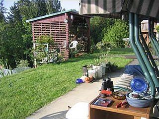 The view & improvements are well worth the price! ADU below. Both units are clean. Upper unit is original 70's & the lower unit is newer. Terraced yard with patio & garden room. Interior circular staircase can be locked off on main level. Vinyl windows, propane fireplace, heat pump. This is a great investment! Do a vacation rental or use it as a get-a-way until you are ready to build new. Huge unfinished room under two car garage for shop, studio or storage. Call Pat Lewallen at West Realty for more information on this home.