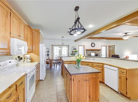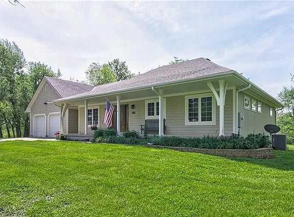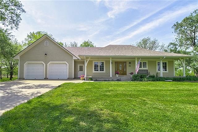 THIS IS IT! If you are looking for a home in the country on a beautifully treed property, this is it. The moment you step on the front porch you will know you are HOME! As you enter the home you will be greeted with the openness. The large entry leads into an open concept living room with built in cabinetry and natural stone wood burning fireplace. The spacious kitchen has an abundance of custom cabinetry, under cabinet lighting, an island and a huge pantry. Off the kitchen there are two dining spaces. A Formal Dining room which can be a flex space and another breakfast room which leads out to the 24 x 12 screened in no maintenance deck w/2 ceiling fans overlooking the beautiful treed property. Main level features Master Bedroom with walk-in closet and ensuite including jet tub and shower. Also included on main level are Bedroom 2 with adjacent full bath, laundry room, and bath leading to garage. Lower level boasts a Great Room with wood burning stove which walks out to a covered patio. Two additional bedrooms, a full bathroom, plenty of space for storage, hobby or workout area, and a storm shelter area located under the large front porch completes the lower level. Additional features include 6 panel doors throughout, newer Owens Corning roof and Lennox energy efficient HVAC both installed in 2018. Large and spacious garage can tandem 4 cars or use some space as a workshop. 30x50 Pole Barn with sliding door large enough for RV parking has electricity, skylights and concrete floor.