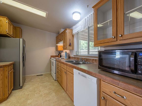 Well-kept, 3 bedroom, 2 bath, 2002 manufactured home on 5.15 acres. Great views overlooking East Roseburg with wildlife and privacy. The home offers a covered back deck, block foundation, laundry room, split bedrooms, master suite with walk-in closet, & formal dining. The property offers a barn, fenced areas for animals, garden shed, & paved driveway. Call today for a private tour!
