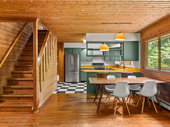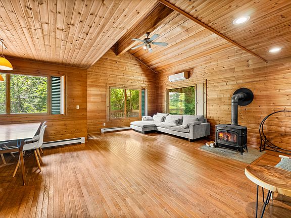 Located on one of Washington's most desirable roads, this 3-4 bedroom Scandinavian style home exudes charm and character throughout. The main level is highlighted by a cozy living room with vaulted ceilings and a wood burning stove, and offers exterior access to the large wrap around deck. Adjacent is a dining area and well appointed kitchen with a gas range and ample cabinet storage. The sun-filled primary suite features large windows overlooking the deck, a walk-in closet, and an en suite bathroom complete with an oversized shower and Scandinavian-inspired sauna. A versatile bonus room-ideal as a home office or fourth bedroom-and a powder room complete the main level. Upstairs, you'll find two additional bedrooms, each with skylights and half-vaulted ceilings, a full bathroom, and a flexible loft space that could function as a reading nook, yoga room, or second living area. Enjoy close proximity to Steep Rock Preserve's scenic trails, Lake Waramaug, The Frederick Gunn School, and Rumsey Hall. Just 20 minutes to I-84 and under 2 hours from Manhattan, this home offers the perfect blend of rural beauty and convenience. Come see why Washington is one of the most sought-after destinations in Connecticut!