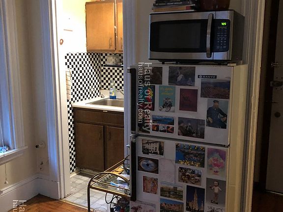 Studio apartment on Newbury St. Features include hardwood floors, two large closets, full kitchen, decorative fireplace, period architectural detail. Heat, hot water and electric are included.