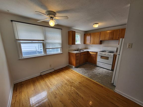 What a hidden gem! 2 bedroom, 1 bath townhome in the Eastwood neighborhood. On a dead end street with Norwood park for play! This is the 3rd unit in a 5 unit building. Not much of a shared yard at the end of the building but there is off street parking for 1 vehicle. This home has gleaming refinished hardwood floors. Kitchen is at the back of the unit, just off the dining room with plenty of room for a good size table. The upstairs offer a massive front bedroom with a large closet. The 2nd bedroom is a bit smaller but also has a large closet. The bath is located on the 2nd floor as well. In the basement is a bonus space: rec room/ office/ playroom/ gaming area/ craft room, the possibilities are endless. Half the basement is utility area for storage & has washer/ dryer hook-ups. You can't beat this price! Get your application in today to schedule a showing. This is for a 6 month lease which will automatically switch to a month to month tenancy. Utilities are paid for by the tenant. Landlord covers water, snow removal & lawn care. Strict on no pets.