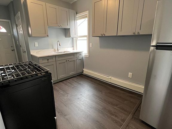 Welcome home! This 2nd floor multi-floor unit is ready to impress with its 2 bedrooms, 2 full bathrooms, and an amazing BONUS office space! The open concept dining room and eat-in kitchen feature brand new appliances, making it the perfect spot for entertaining. You will also find a spacious living room with luxurious new vinyl flooring throughout, creating a cozy and stylish atmosphere. The second floor is complete with a full bathroom and a fantastic BONUS office space, providing the perfect environment for productivity and creativity. As you head up to the third floor, you'll discover two generously sized bedrooms and another full shower stall bathroom. The entire unit has been freshly painted and renovated, ensuring a modern and refreshing feel throughout. Not only does this unit offer two entrances - a front entrance from the street and a rear entrance on the second floor deck. Tenants will have shared access to the second floor deck, a great space to relax and enjoy the outdoors. Conveniently located near major highways and bus stops, this unit offers easy access to wherever you need to go. Street parking available, rent will increase $80 when parking lot is created with town in vacant lot next door. Owner pays for water, sewer, garbage, and lawn-care. Tenant to pay for cable, gas, and electric.