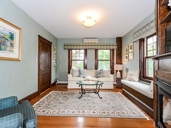 Ideally situated in heart of Bellevue Hill within walking distance to Commuter Rail, Roche Brothers and all of West Roxbury's many restaurants and shops. Perfect city living with a suburban feel. Classically renovated 2+ bedroom, 1.5 bath with original period detail throughout. First floor features living room with gas fireplace, custom built-in and classic window seat, dining with original built-in server, updated sun-filled kitchen with eating peninsula, generous cabinet space (including pantry), gas cooking and laundry, charming half bath, and two generous bedrooms with large renovated bath nestled between. Lower level has finished room with a closet and great light...perfect for family room, study, exercise room, etc. Additional features include deck off kitchen, replacement windows, Hunter Douglas blinds in living and dining and shared common storage.