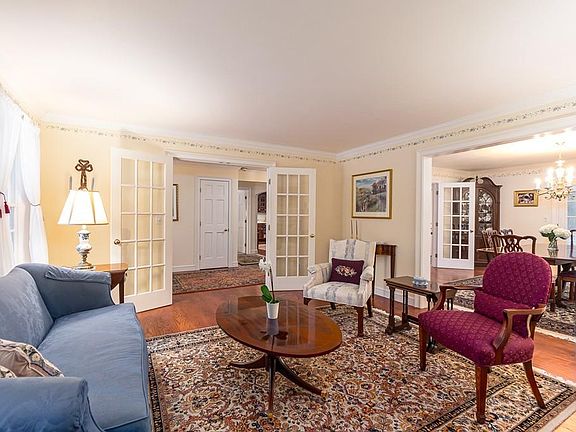 Sited off the road on over 2 level acres, the approach sets the stage for this home's classic appeal. The welcoming entry leads to the fireplaced living room with French doors & handsome hardwood flooring. A formal dining room offers a fireplace, surrounded by built-ins & French doors leading to an expansive screen porch with vaulted ceilings & skylights. The eat-in kitchen features a center island, wet bar & spacious breakfast room with walls of windows & plentiful natural light. The family room has soaring ceilings, handsome built-ins & fireplace with wood stove. A 1st floor bedroom & full bath is a convenient feature for guests. 4 additional bedrooms are found on the 2nd floor, including the master suite, cozy fireplace, walk-in closet, & renovated spa bath. An airy loft overlooking the family room adjoins a home office & bonus room with au-pair potential. MULTIPLE AT HOME WORK SPACES! A must-see! 2020-06-20