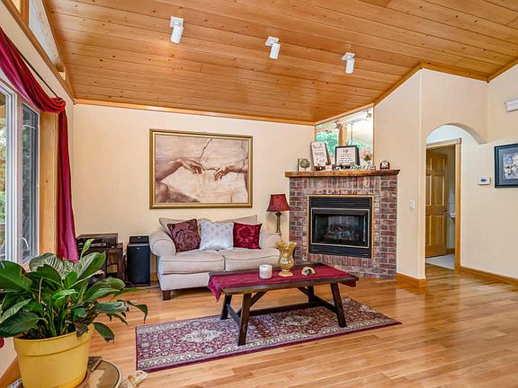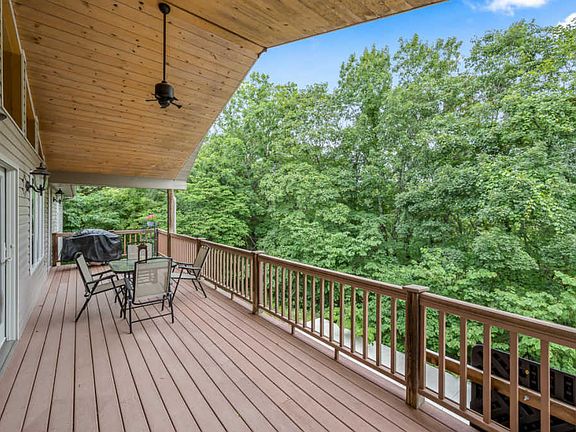 This beautiful Crane built home is situated on nearly an acre lot with a beautiful back deck high in the trees with amazing views. The large open floor plan is filled with natural light with hardwood floors, a corner fireplace & soaring ceilings. Entertain guests with ease in the kitchen/dining combo with expansive island with bar top. The master suite features his & her sinks, a corner jetted tub & walk-in shower. The full finished basement is the perfect space for kids or visitors with a second living area, kitchenette, additional beds & baths for a grand total of 3 beds/3.5 baths. Enjoy the outdoors from the back deck while grilling or while watching kids play basketball below on the oversized patio. Located at the end of the road you will have the privacy you desire year round!