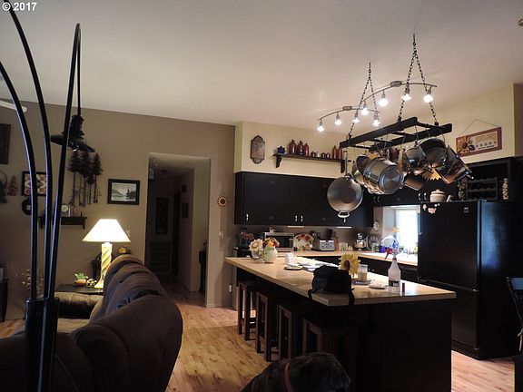 Beautiful, secluded, wooded 4.6 acres in desirable Camas Valley. Light and airy 3 BR/1 bath home with 30 x 40 shop w/ concrete floor and 2 small outbuildings. Well w/2,500 gal holding tank. New woodstove and F/A heat. End of RD privacy. Plenty of open parking. Park-like setting with large tall trees. Hardwood floors. Large pantry. Views to the west.