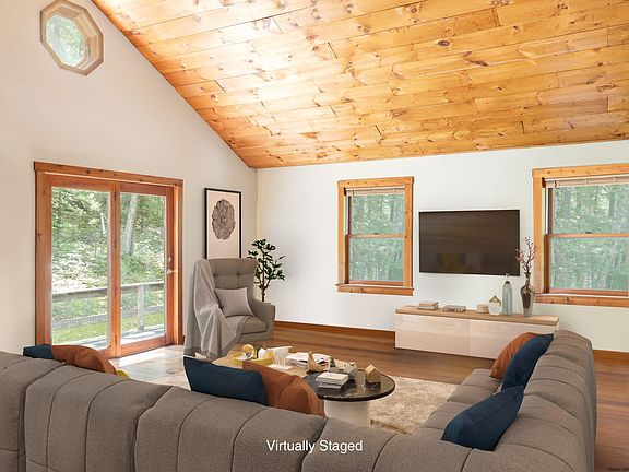 OPEN HOUSE: Saturday, May 6th from 11am-1pm! Tucked along a beautifully winding wooded road, this gem of a country getaway is the perfect place to find peace and respite. A wraparound front deck invites you into the home where you’ll find a spacious kitchen that naturally flows into the living room with its double-height ceilings and large windows that let in plenty of natural light. The two generous bedrooms are located on the main level as well as the home's full bath. The second level offers a bonus room that would make a great office, media room, home gym, etc. There’s also ample storage space! The home has been impeccably maintained over the years, so it would be easy to personalize the home and maximize its potential with minimal cosmetic updates – or even just the furnishings! Sitting on 4 acres, the property is easy to maintain with just enough lawn and plenty of woods to explore. While there is plenty to enjoy right here, the home is close to some great upstate destinations! 10 mins to Mountaindale, 11 mins to Ellenville, and 22 mins to Kerhonkson/Accord. 20-34 mins to some of the area’s best hiking and just 1 hr 20 mins to/from the GWB!