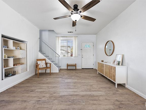 Located in the charming North Meadows neighborhood, this 5-bedroom, 2-bath home offers a flexible layout to accommodate various living arrangements. The first-floor bedroom and full bath provide convenience and privacy, perfect for guests or multi-generational living. The open-concept great room seamlessly connects to the dining area and kitchen, creating an inviting space for entertaining. Upstairs, you'll find four additional bedrooms, a full bath, and a second-floor laundry for added convenience. Plus, enjoy outdoor living with a covered patio, great for relaxing or hosting gatherings, including a spacious backyard featuring a beautiful lemon tree. In the front, a fragrant rosemary bush adds charm and curb appeal. The detached garage in the backyard with extra storage completes this fantastic home.