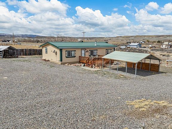 Gorgeous views of the Grand Mesa and the Uncompahgre! Three bedroom 2 bath Ranch style home on 2 Acres. Home situated facing East so there is a great view of the Grand Mesa from the Redwood deck. Split floorplan with vaulted ceilings in the living room. Home has three independent heat sources. The living room has a wood burning stove, there's a natural gas wall heater and a forced air heater. Generous sized bedrooms, 2 full baths, dining room. Numerous outbuildings included. There is a covered 2 car carport in the front and in the back. A partially enclosed workspace that has electricity. A 26 x 8 storage shed with roll up doors on both ends. A workshop shed with power, a woodshed and a chicken coop with power and water. Bring your animals, no HOA. Perimeter is fully fenced.
