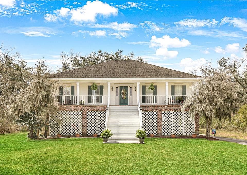 Live beneath the shelter of an old-growth oak alley in this plantation estate on approx. 2.76 acres. Take in the sunset on the brick patios, gather 'round the den's cozy fireplace, or prep meals in the gourmet kitchen with harlequin mixed tile, all ss appl, walk-in pantry & sunny eat-in space. Primary suite has gleaming plank floors & custom trey ceilings + jetted spa tub/sep shower. The service lift is located at the back of the home. Create a place for gardens, livestock, 4wheeling, and good country fun.
