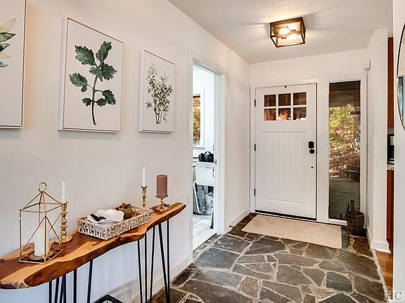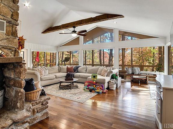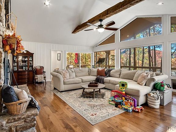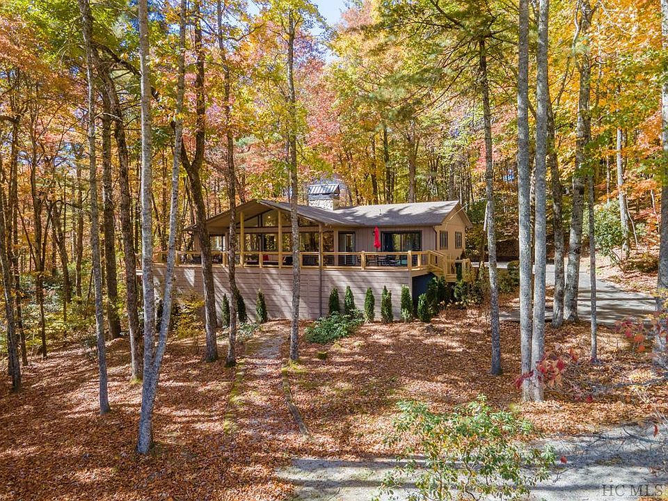 This beautifully remodeled home is located on a nearly level 3/4 acre lot in the upscale neighborhood of Round Hill. Only 10 minutes from Cashiers, this home has been extensively remodeled during the past two years including new cabinets, countertops, appliances, flooring, bathrooms and all new decks with wire railing. Ultra fast 1 gig internet is installed so working from home is a breeze. Stone floors in the entry foyer lead to a spacious great room with a wall of windows, wet bar and a floor to ceiling stone faced wood burning fireplace (check out the stone chimney and unique chimney cap above the roof line). Over 600 sq ft of decks to enjoy the fantastic mountain view and the nearly level yard is pet and kid friendly. The owner's bedroom and guest bedroom are on the main level and both have doors leading onto the expansive decks. There is also an office on this main level. The lower level features an additional guest suite with a private entrance. This suite has a living area, bedroom area and full bath. The guest suite can be accessed by either stairs off the rear deck or via a separate parking area making the suite a stand alone rental opportunity. The double carport offers a all weather entry to the home and has two large storage closets for secure storage. The septic system has just been serviced and expanded to a 3 bedroom system and the exterior HVAC unit was recently replaced as well. The HOA fees are a very reasonable $1,250 per year and the HOA does a excellent job of maintaining the roads and grounds in the neighborhood. The lower level also has a large workshop with built-in shelving. Call today for your private showing! NO DRIVE BYS PLEASE