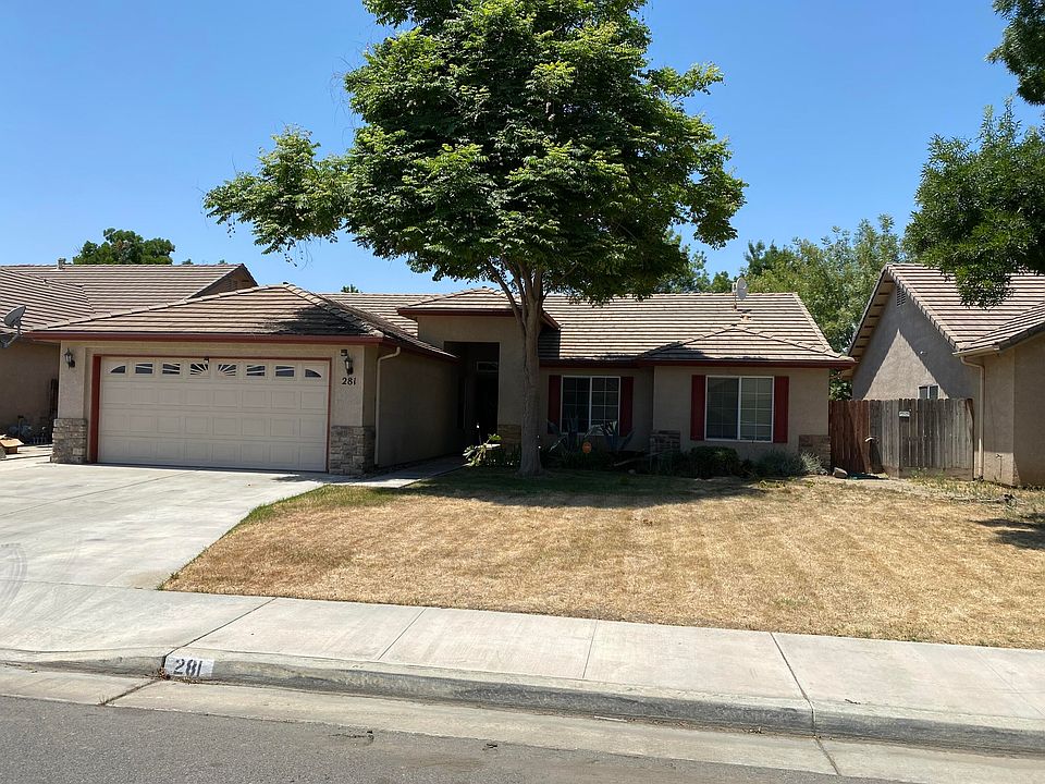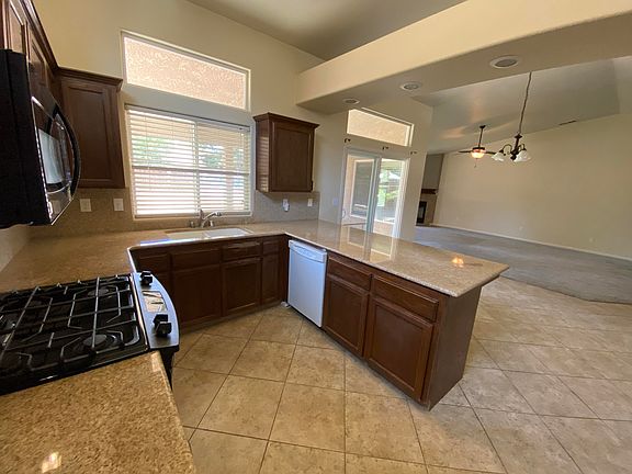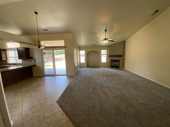Beautiful four bedroom two bath home on a quiet cul-de-sac in South West Porterville on a large lot. Built in 2007 with an open floor plan (kitchen, dining, and great room) with vaulted ceilings. Interior, laundry room, built-in pantry, granite countertops in kitchen, microwave, large, sliding glass door with transom window above for lots of natural light, large, great room with vaulted ceiling and fireplace, entry to kitchen floor has designer tile, large master bedroom with vaulted ceiling and walk-in closet, large master bath with dual sinks, soaking tub, large shower. Two car garage with automatic garage door opener, and rollup door. Large backyard with large covered patio, swing set, and pool. Storage Shed and Dog Run in backyard.