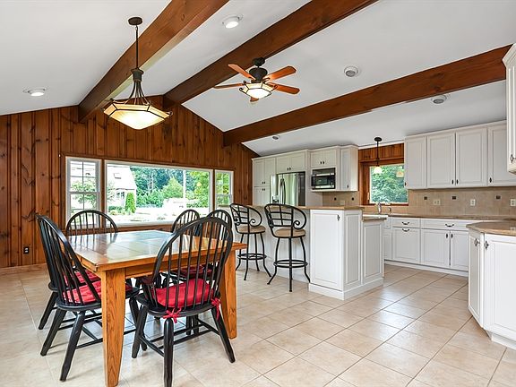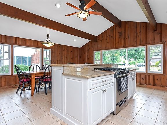 • Features: Cathedral Ceiling(s), Beamed Ceilings, Flooring - Stone/Ceramic Tile, Window(s) - Picture, Dining Area, Pantry, Countertops - Stone/Granite/Solid, Kitchen Island, Cabinets - Upgraded, Exterior Access, Open Floorplan, Recessed Lighting, Remodeled, Stainless Steel Appliances, Gas Stove, Lighting - Overhead