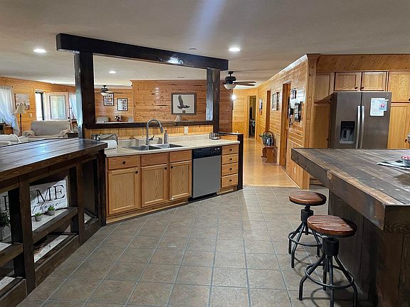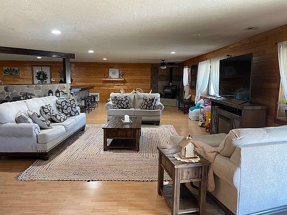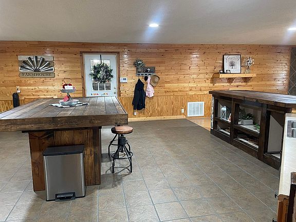 Country Property with many updates!! Go South on Dartmouth Road from 56 HWY 3 miles, West 1/2 mile to 56 Ave, North 1/4 Mile to property. Beautiful Country property all on one level!! This is an earth home with 4.6 +/- acres to play with. The home features a large open floor plan with two bedrooms and two full bathrooms. There is a 3rd room that could be used as an additional bedroom. The kitchen and dining room are all open to the large Great room. The master bedroom is a true master suite with a separate Jacuzzi tub and walk in shower. The home also has an oversized heated attached garage with custom bar. Additional bonuses are a 30 x 40 metal-built shop with covered patio and a nice hunting cabin with sliding windows overlooking the pond with beautiful landscaping all around!! Don't miss this amazing setup, give us a call today!!!!
