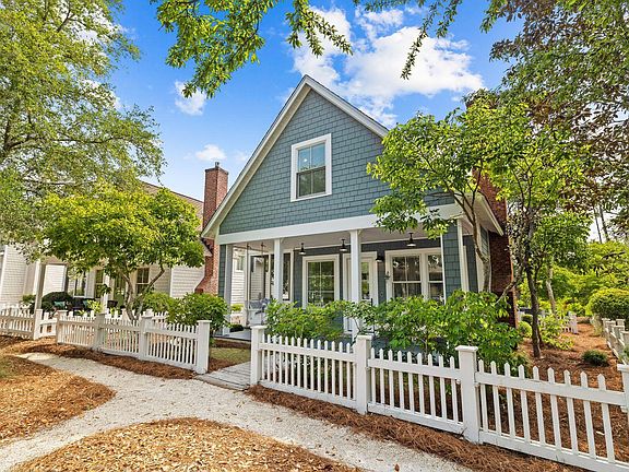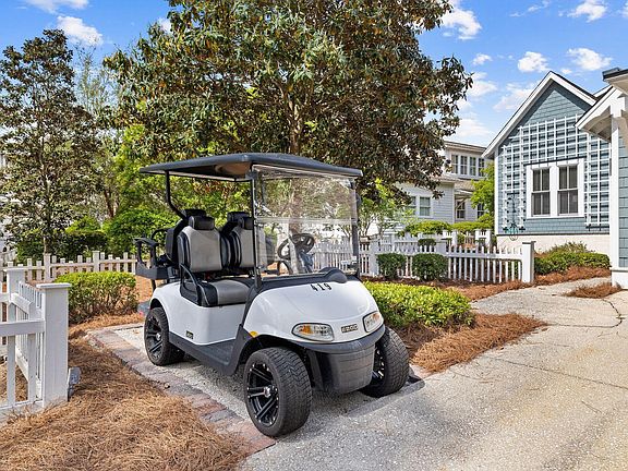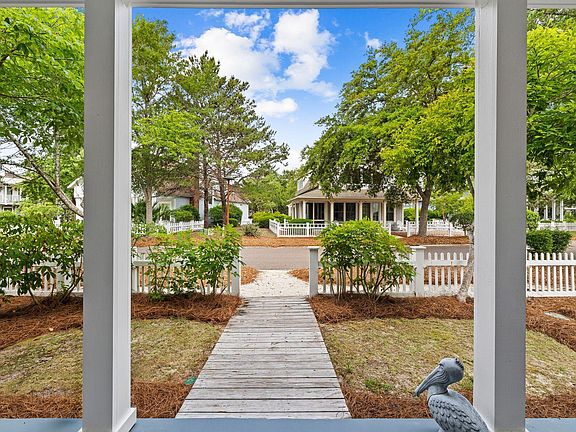 Set behind a white picket fence, this coveted Nantucket-style beach cottage is currently the lowest-priced home in WaterSound Beach. Close to extensive amenities and the private beach that WaterSound is known for, this charming home conveys with high-end furniture, a golf cart, and kayaks. Sitting on a generous lot, there's a detached garage and ample space to add a private pool. The front porch is perfect for relaxing or reading on the custom porch swing. Step inside to find a cozy sitting room with new hardwood flooring, soaring ceilings and white wainscoting surrounding a cozy brick fireplace. Multiple windows showcase pretty garden views. The dining area flows directly into the kitchen with a breakfast bar providing additional seating when entertaining. The well-appointed kitchen has a new refrigerator, range, dishwasher, and a wine/beverage refrigerator for serving perfectly chilled drinks. A laundry and office area with built-in cabinets maximize the additional space. Alfresco dining can be enjoyed on the adjoining screened porch or beneath the arbor on the side deck. This pristine home boasts multiple updates and repairs, totaling more than $100,000. These include a new tankless water heater, replacement HVAC with a programmable thermostat, monitored fire/smoke detectors, and Ring doorbells for security. Quartz countertops have been added to the kitchen and bathrooms, with new faucets and paint. The former water heater closet has been converted into a useful pantry with a lock-off. This cute-as-a-button cottage has a spacious primary suite with an ensuite bathroom on the first floor. Stairs lead up to two guest bedrooms tucked beneath the eaves. As well as the one-car garage, this newly painted home has multiple storage closets making it ideal as a second home or vacation rental in this sought-after community. Onsite amenities include a mile of beach, boardwalks, community pools, The Dunesider Grill, and a fitness center. The stunning white sandy beach and emerald gulf waters are just a short stroll from the door.