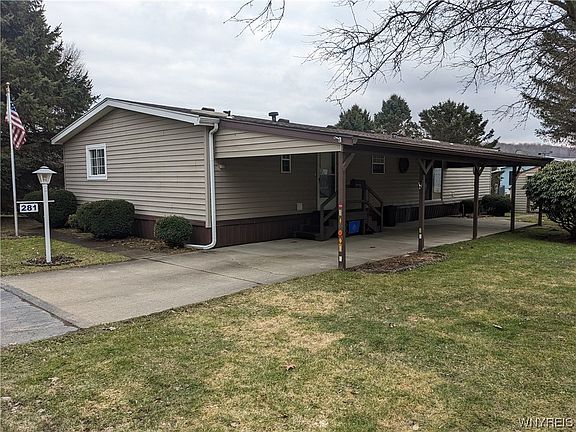 Pristine home now available in the quiet and clean Arcade Valley Estates, awaiting only its second owner. All three bedrooms have walk-in closets, and the master bedroom has had a window added on the end for additional light. Master bathroom with garden tub, shower and double sinks. Central air and an electric fireplace increase comfort year-round in this smoke-free and pet-free home. Seller states new shingle roof was added just six years ago, and the driveway and carport are extra long for sitting outdoors and enjoying nature. Bedroom suites and most other furniture are negotiable, if interested. All kitchen appliances are included and the washer & dryer. The shed has electricity and a built-in workbench. Extras also include exterior electrical outlets in carport area and beautiful Rhododendron bush on the lot that blooms in the summer. Arcade Municipal Electric! Park management will want to meet with successful bidder for Park approval.