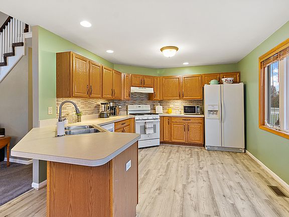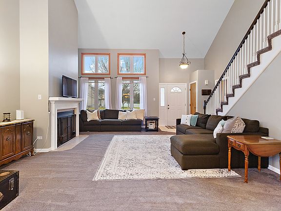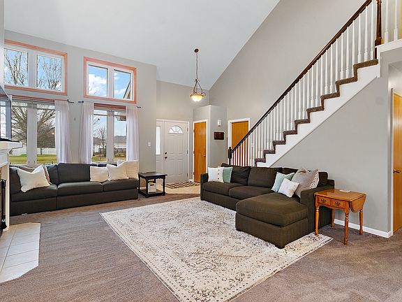 Bright and open, very well maintained 3 bedroom, 2 bath home on a full basement! You'll love the open concept with soaring ceilings and windows from the first floor to second story! So much natural light! Open kitchen features all appliances and a breakfast bar overlooking the dining nook. Sliders lead out to back yard with huge two tiered deck. 1st floor master suite features huge walk in closet and full bath with double sink. Large main floor laundry with sink and closet. Spacious bedrooms and full bath upstairs. 2.5 car attached garage and more! New flooring and paint throughout! Move in ready! Roof new in 2020, AC 2015, water softener 2021, washer/dryer 2022, extra insulated. Schedule your showing today!