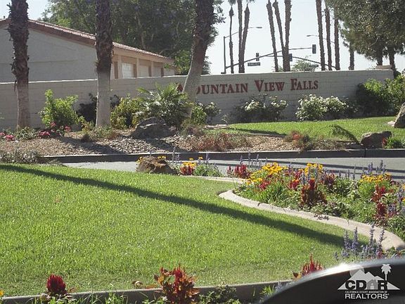 Lovely sought after one storey two bedroom, two full bath condo in Mountain View Falls in desired location of Palm Desert. Sold as is and would make a good full time home or seasonal getaway. Lovely enclosed courtyard. HOA dues include trash, basic cable, maintenance of outside including roof, insurance for outside of structure. Community is nicely maintained with 2 pools and tennis court. Bring an offer!