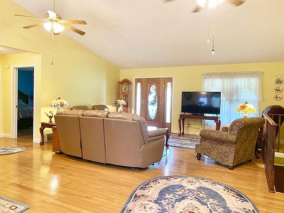 This large spacious open concept home is a must see... This home has 4 large bedrooms and 3 full baths and all are large in size. The main living room, dining room and kitchen have beautiful hardwood floors and cathedral ceilings with an open concept. The kitchen comes with all appliances, has solid wood cabinets and nice drop lighting over the breakfast bar along with a beautiful view from the window above the sink. This home features ceiling fans in every room and large closets in each bedroom. The basement is finished with a large master suite and bath with a closet that is every girls dream. The downstairs also features a nice family room and an extra room that could be an additional bedroom, office, craft room or whatever your heart desires. It features a large nice lot with mature trees and a beautiful view. The convenience of the location is far enough out to be out of town but close enough to be in town within minutes. This home comes with a 1 yr Home Warranty... Don't wait!!