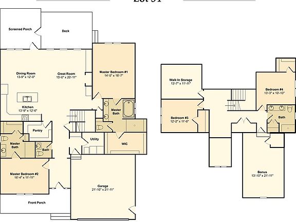 - Other Rooms: 1st Floor Bedroom, 1st Floor Master Bedroom, Family Room, Utility Room, Entry Foyer, Walk In Pantry, Bonus Room/Finish, In-Law Suite main floor, 2nd Master Bedroom