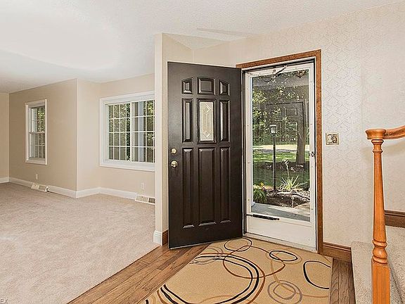 Room to grow! This classic 5 bedroom colonial is situated on a wooded lot only minutes from the Cuyahoga Valley National Park, Interstates and major shopping. The classic floor plan is as in demand today as when this home was built. The kitchen features brand new cabinets, counter tops, range refrigerator and microwave. The kitchen eating area overlooks the Family Room with fireplace and slider to the new 24' x 18' concrete patio and 12' x 12' gazebo. The level, usable backyard is perfect for entertainment. There are hardwood floors as indicated in the individual room information with new carpeting in some rooms. The elegant 22' x 18' Master Bedroom has double closets and a slider to a balcony which overlooks the backyard. Most rooms have been freshly painted. The driveway has been widened and the 2+ car garage has a large, multi-use storage area. The owners are providing a one-year home warranty.