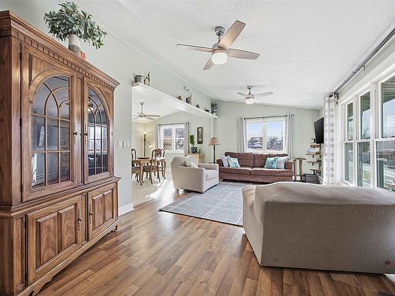 Welcome home to 281 Washington St in Riverside- functional, bright, spacious layout with lots of amenities. This raised ranch is a corner lot with a deck in the front, and a patio, storage shed, and fenced-in yard in the back. The attached one car garage is oversized. Walk in into the living room with vaulted ceilings and big windows facing west for great sunset views. The living room leads into the large dining room that also has vaulted ceilings and large windows facing east for sunrise views! The kitchen and dining room are open concept and also has a breakfast bar. The kitchen has a great amount of counter top space and cabinets, ideal for someone who likes to spend time in the kitchen or hosting. There is also a walk-in closet for pantry or extra closet space. Main floor wraps around in a circle so the living room connects back to the kitchen and down the hallway in-between them is the three nicely sized bedrooms and full bathroom that has been updated. Off the other end of the kitchen is a door to the backyard and patio or stairs to the basement. The basement has a living room space, another bedroom, a laundry area, a storage/hvac room, and a half bathroom, as well as access to the garage. The bedroom in the basement has a walk in closet. This home is unique as it has a gas furnace AND hot water heat.