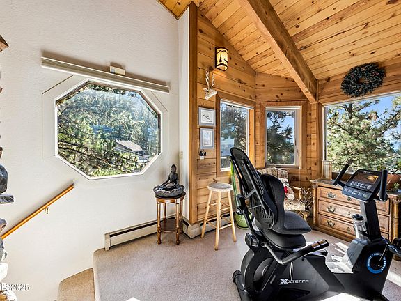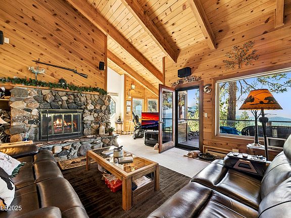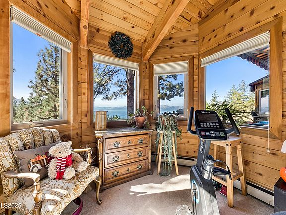 Unreal, spectacular & panoramic views of Lake Tahoe highlight this south facing, Cave Rock Estates, "Tahoe style" home with vaulted, open wood beam ceilings. With sweeping views from the Southwest of Mount Tallac, all the way East to the ski runs of Heavenly Valley Ski, these 3 bedrooms, plus a den/office, along with a loft, 3 bath, 2516 sq ft home, makes this a home one to treasure forever. The kitchen/dining room with open wood beam ceilings, features granite countertops, knotty pine cabinets, gas stove with stainless steel appliances & pantry. The great room features tall, vaulted open wood beam ceilings, with a wood burning fireplace, a spacious loft, a cozy sitting area, along with deck access to the stunning, picturesque, views of the entire South end of Lake Tahoe. There are two ensuites, one on the main floor and another on the entry level. The upstairs ensuite and bath have vaulted open wood beam ceilings. There is a guest bedroom and bath as well on the top floor. The entry level ensuite has a jetted tub, double sinks and its own private deck, with a den/office, spacious laundry room with sink and plenty of storage. The level entry, two car garage has plenty of storage. Other features include two separate A/C units in the great room and one in loft area (which is also vented to kitchen area), central vac, Ring doorbell, three decks with glass railings, redwood siding, new generator system, and a finished bonus room, with heat/electricity and A/C located under the home. There's also parking for a boat/RV on right side of home, along with storage shed. The front yard features automatic sprinklers, and hot water from front faucet, perfect for washing your cars. Furnishings are negotiable. Located on a .37-acre lot, with sunshine all day long. Enjoy the opportunity of staying in shape while taking your daily walk along the wide, sunny streets of Cave Rock Estates, all the while gazing over the spectacular views of Lake Tahoe. One of the lowest priced "lake view" homes on the market! Professional photos to follow.