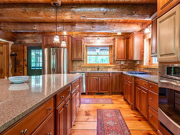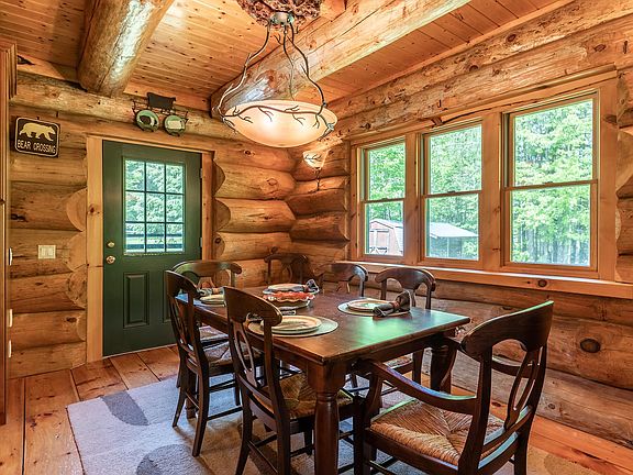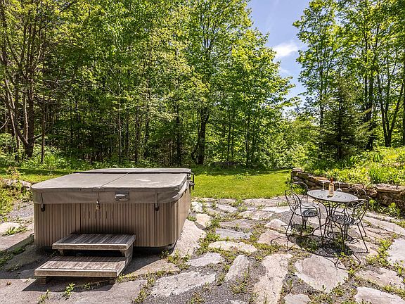 This beautiful log cabin off of Healdville Road is the ultimate Vermont hideaway. With no neighbor's in sight, you're sure to enjoy privacy for years to come! This land has been impeccably manicured. The stone patio and front porch offer the ideal setting for entertaining, with space for a porch swing and even a cocktail bar. The main level features an open floor layout: quartz countertops, cherry cabinets and a massive island in the kitchen; a dining area with wet bar; a 3/4 guest bath; and a living room with a Woodstock Soapstone stove. The primary en-suite bedroom on the 2nd level is lovely and has its bathroom with a new walk-in slate shower, a walk-in closet and a private balcony with distant views of the backside of Okemo. There are two additional bedrooms, each with ample closet space, a full bathroom and a laundry room. The basement is fully finished and walks out to a second stone patio with a hot tub and outdoor shower. Outbuildings include a garage and woodshed. There are also two small ponds on the property. Have dogs? The current owners thoughtfully installed a fence that keeps Fido within the property boundaries. See why this property is the next one you need to move on. Showings by appointment only. No drive-bys, please. Please note GPS isn't always accurate. A video tour is available upon request. Full house generator available, great for winter storms!