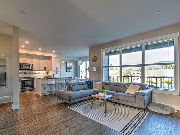 You cannot beat the perfect location of this stunning luxury townhome! Conveniently located within walking distance to Askews Uptown on a lovely, quiet, no thru road, yet handy to shopping, schools, and recreation! Enjoy the beautiful views of the mountains from the spacious balcony, or inside from the bright, open living space in front of the warm, cozy, modern fireplace. This home is built for living! Large kitchen with island, quartz countertops, 9 ft ceilings on the main, huge windows, quartz countertops, LED lighting throughout. Three bedrooms, 2 bathrooms and laundry are upstairs, including the master suite with beautiful, huge ensuite. The lower level is full walkout with a separate entrance, 1 bedroom and a full bathroom, large family room with bar area. You will love living here!