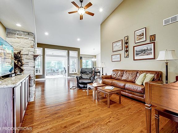 This beautiful paired patio home provides excellent spaces as well as buffered land on the corner with plantings and detention areas as well as green spaces and woods to the rear. Close to major streets, shopping, walking and biking paths. The 4 seasons room offers fantastic views and relaxation. During cooler months the fireplace offers welcome warmth and ambiance. Plenty of space for storage and/or fishing for additional living areas is available in the daylight basement. The basement has a cedar closet and finished bath. Seller also has a 12 x 12 hobby/workshop area.