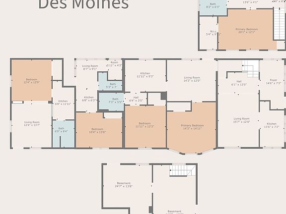 This Four-plex investment opportunity is located near Drake University. It features two, two-bedroom units, each with a full bathroom. and two efficiency units with 3/4 bathrooms. All units have separate entrances and off-street parking. The property had been recently updated with a new HVAC boiler system and have rental certificates valid thru most of 2025.