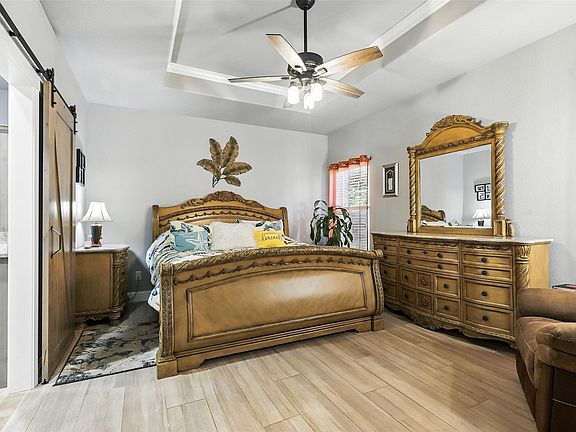 Beautiful home in Canyon Creek, a gated lakeside community W 2 boat docks, 2 pools & parks w playgrounds, club house, tennis & basketball courts. Rare .34 acre lot on a quiet court w no thru traffic & close to the water. NEW ROOF AND GUTTERS OCT 2025. The home has been meticulously maintained, features an appealing open floor plan, tons of natural light. Flooring is porcelain wood-look tile, 6 in crown molding w ornamental molding around entry doors & living room windows, 6in baseboards & 2in blinds throughout. The living room boasts large rear windows overlooking the covered patio, recessed lighting & ceiling fan. Kitchen has large island-breakfast bar w farm sink, upgraded granite, custom stained soft close cabinets, glass backsplash, recessed lighting & stainless appliances, SAMSUNG REFRIGERATOR INCL. Light & bright dining space surrounded w windows. Master suite features a trey ceiling, farm style ceiling fan & 2 windows w garden views & room for sitting area. A barn door leads to an ensuite w dual granite vanities, large walk in tiled shower w bench, a barn door to a WI closet w built in shelves & cubbies. Secondary bedrooms have large windows, ceiling fans & closets w shelves & cubbies. Full bath w granite, tiled shower & a deep soaker tub. Utility room has built in cabinets & pantry. Enjoy family cookouts or quiet time on the tranquil covered patio w ceiling fan & roll down shades. The back yard is adorned w multiple Austin stone lined flower & rock gardens, 5ft black vinyl coated chainlink fence w PVC privacy slats, side entry gate & back gate leading to the tree lined & secluded remainder of the property. No backyard neighbors. Room for a shop, gazebo, etc. Full yard sprinkler system. Big front flowerbed w rocks & perineal flowers. Whole home Culligan water filtration system & 3 gal reverse osmosis for drinking. Finished 2 car garage w painted walls & ceiling. Plywood decking in attic provides tons of storage space. Installed safe. USDA Eligible.