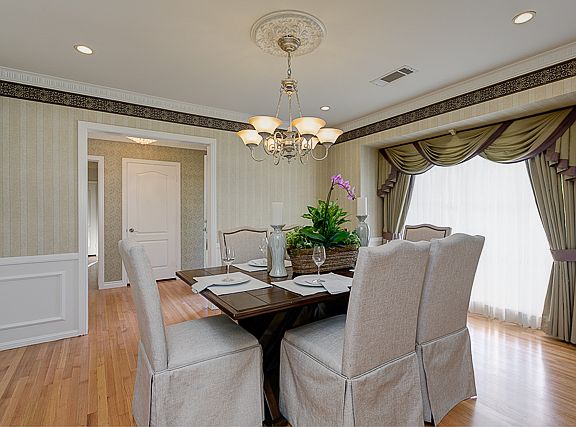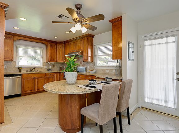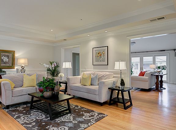 Welcome home to this sprawling San Marino single story, which offers elegance and practicality! Enter through a private driveway with an automatic gate. The lush lawn highlighted with a brick pathway leads you to a classic and inviting front entrance with a bubbling fountain. The entry foyer features a domed ceiling and crystal chandelier. Crown molding and well maintained natural wood oak floors are fitted throughout. The wainscoting at the formal dining room and living room provides both warmth and sophistication. This home is perfect for a multi generation family with three private wings. At the front wing, you'll find two large bedrooms and the first full bathroom. Off the family room is the master suite which provides privacy secluded on the west side of the home with a large walk-in closet and en-suite that doubles as a relaxation retreat equipped with a soaking tub and steam shower. The rear east wing features two generous sized bedrooms and a third full bathroom. The bright and spacious family room has high ceilings with natural light seeping through double skylights. Sliding doors to a patio showcase the tranquil backyard. The property offers a three car garage with the third garage currently being used as a bonus room/gym. This home, located in San Marino's premier school district is updated, turnkey and ready for your move!