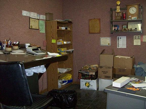 Commercial zoning, this property has two offices, work area, storage, detached 30x25 garage with overhead door, lots of open ground for more building. 10x16 building negotiable, not included in listing at this time.