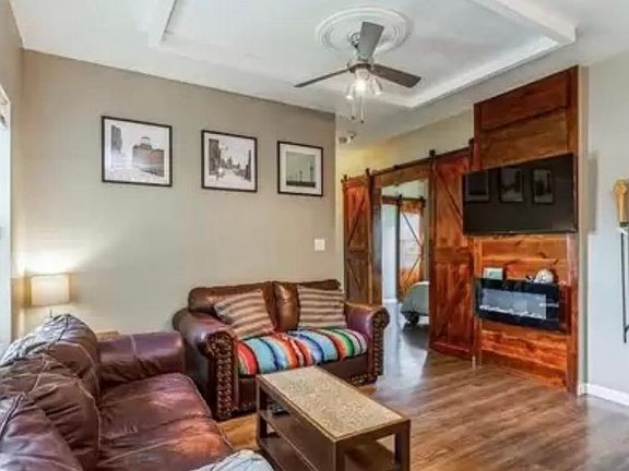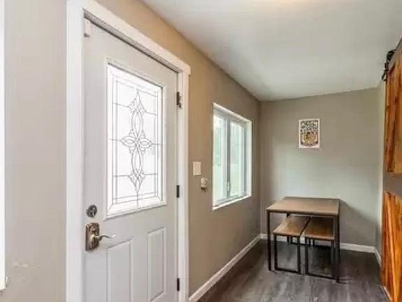 Stunning Bungalow near downtown . This 3 bedroom, 1 bath home was fully renovated in 2018! Enter the front door into a mud room then continue down the hall to a bedroom on the right, then the Master bedroom on the left. All the rooms have barn doors. The large bathroom is beautiful and has a door leading into the master bedroom. The kitchen and living room are open concept and cozy with an electric fireplace. The kitchen has white cabinets and newer appliances!