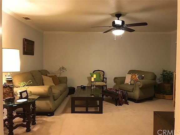 Spectacular Value! Look at the possibilities of this spotless 3 BR/2BA stucco single-story near schools. Live energy-smart with tankless water heater, newer central heat and air, plumbing, double pane windows, insulation and ceiling fans. The crown moldings, carpeting and quiet toned décor add to the homey feeling you get when you first step foot into this inviting home. Newer roof, exterior stucco, fence, auto sprinklers and custom shed, plus additional metal shed. Enjoy it's easy-going style!