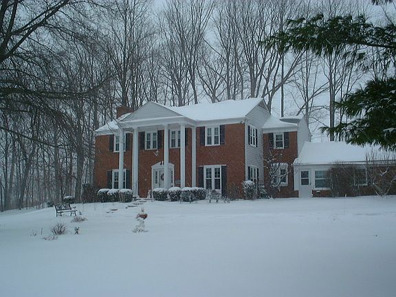 Full 2 acre partially wooded lot. 2 fireplaces, one gas & one traditional wood. Attached 2 car garage and detached 2 car garage. Traditional colonial style brick home.