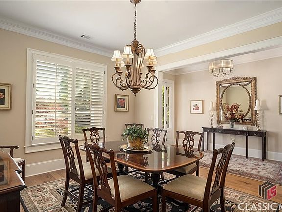 This exceptional residence combines classic Southern charm with modern luxury, offering a thoughtful floor plan ideal for both everyday living and elegant entertaining. Just inside is the exquisite formal dining room with drop-in lighting. The great room makes a wonderful family gathering space and has a fireplace, shelving, and a stunning sun room just beyond it. The eat-in kitchen is open to the great room and boasts a sizable island, pantry, professional grade appliances, and a cozy breakfast area overlooking the backyard. The owner's retreat features an enormous walk-in closet with built-in shelving and a deluxe, private spa-like bathroom with a lovely tile shower, soaking tub, and dual sink vanity. Also on the main level is an additional bedroom with en suite bath, office and optional third bedroom on the main floor. The upstairs landing hosts a loft area that you could use as a sitting area, play space, or reading nook. Also upstairs is another bedroom and another full bathroom. The garage can house two vehicles and the third bay is heated/cooled to be a workspace for those that are handy, and could be easily be turned back into a third car bay. Yard maintenance is included in the HOA fees. Additional highlights include elegant hardwood floors, generous natural light, abundant storage, and access to The Georgia Club’s world-class amenities—including championship golf, tennis, pools, fitness center, walking trails, and clubhouse dining if a membership is desired. Convenient to US-316 access and a short drive to Athens.