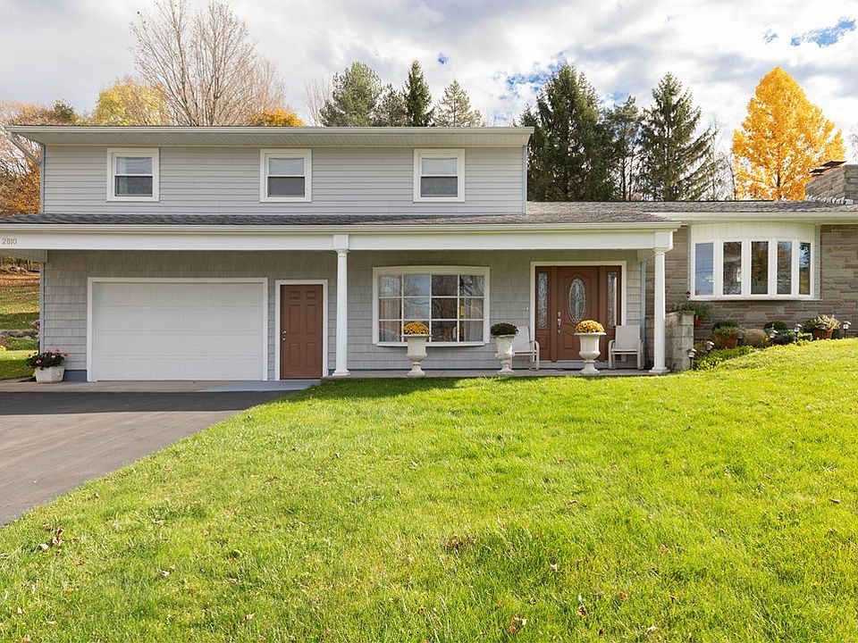 Charming country estate on half an acre offers a serene escape in a peaceful setting. Extensively renovated this home blends fine exterior finishes and elegant interior elements. Recently replaced roof, windows, siding & front door not only enhance the home aesthetic appeal but also provide improved energy efficiency. Interior layout is versatile to fit any need. Thoughtfully redesign kitchen boasts elegant granite countertops, bringing a touch of luxury to your culinary experience.The living space is enhanced w/refaced fireplace, adding warm ambiance. Bathrooms have been tastefully redone, showcasing modern finishes.Practical upgrades include replaced septic tank, new boiler, water heater, new washer /dryer ensuring that home functions seamlessly.The new garage door, complete with an added service door for convenience, simplifies life. Enjoy easy access to the FR from both entry hall and kitchen, there is also an adjacent office. An upgraded sunroom is the perfect place to enjoy natural beauty, thanks to replaced flooring and door. From coffee to tea enjoy it in complete privacy. In addition to its other features, this home includes a spacious two car garage for daily convenience.