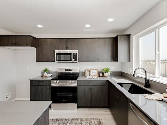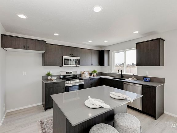 This new home located in beautiful Kuna, Idaho has all the comforts you need & more! Enter inside the Tatom 2054 and feel immediately welcomed. As you move toward the back of the home, you find a well-appointed kitchen complete with a generous pantry and a kitchen island. The kitchen comes with stainless steel appliances and stylish solid surface countertops, adding both functionality and aesthetics. A formal living room at the front of the home and the main living room in the rear provide multiple living spaces to host guests in or relax. The upper level primary suite is accompanied by the laundry room and three additional bedrooms. The fourth bedroom offers a walk-in closet for extra clothes or storage. Photos are of the actual home! **Closing can occur no sooner than 10.10.25**