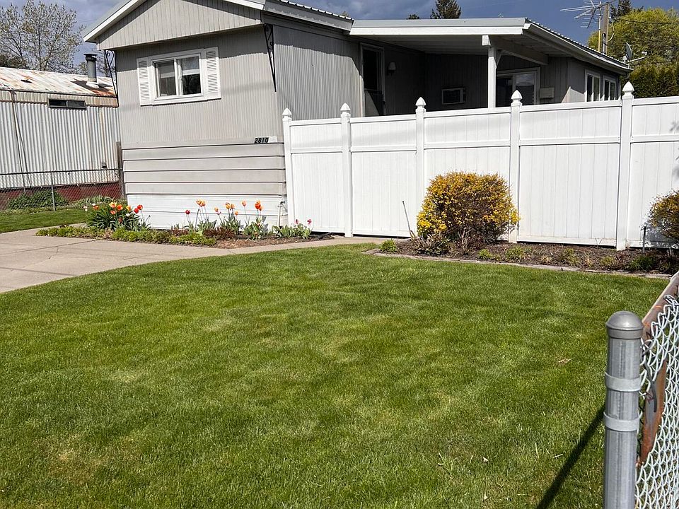 This is a rare find, a single wide mobile home on land. Not in a park, no HOA fees in the heart of Coeur d'Alene. Directly across from Lowes. This property has been well taken care of. There is an add on Sun Room, 1/2 Bath off of the primary bedroom, as well as a Laundry room. This mobile home has a canopy that was installed in 1980. Single level with dining area, living room, sun room, 3 bedrooms, 1 and 1/2 baths. There are 2 additional storage sheds in the back yard. Fully fenced, great for pets.