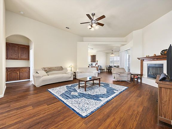 Desirable corner lot, split wing 4B/3B home situated within walking distance to Granite Pointe Elementary & just minutes from the 99 freeway, making commuting a breeze! Warm-toned luxury vinyl flooring & soft newly painted neutral-colored walls create an inviting atmosphere. A fireplace with a wooden mantel serves as a focal point, while an open layout leads seamlessly into the dining area & kitchen. The bright and spacious kitchen features rich wood cabinetry, white tile countertops, and bar top seating, seamlessly connecting the kitchen to the dining area, which is bathed in natural light from large windows w/plantation shutters, offering a view of the backyard. Enjoy peace of mind with a brand-new HVAC system for year-round comfort! The property also features a new side fence for added privacy and curb appeal. The primary bath is a luxurious retreat, featuring dual vanities for ample space, a spacious sunken tub perfect for relaxation, and a separate shower for added convenience