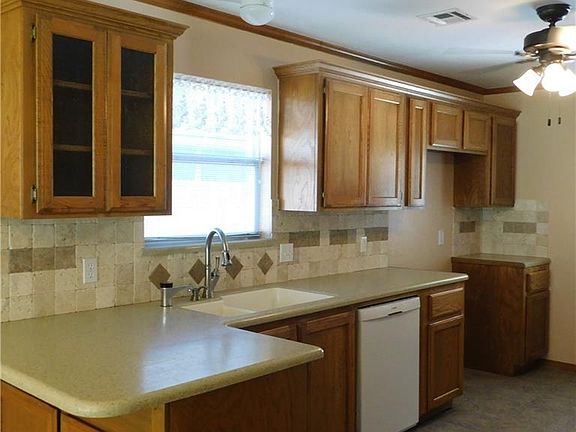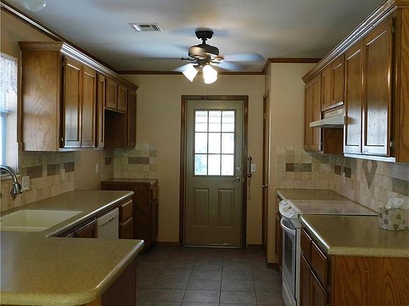 Darling home for buyers wanting to locate in Northridge Addition. This well maintained 3 bedroom/2 bath home (master bath with walk in closet, jetted tub, handicap accessible shower and a double vanity) features a large living area with a gas fireplace, lovely kitchen/dining area (hot water on demand at sink and a Bosch dishwasher under a year old, tiled back splash), plus a 2-car garage with a storm shelter inside. There is a stockade fenced back yard with a great outbuilding, lovely landscaping and a sprinkler system. You must check this one out right away. It's clean and ready to move in.