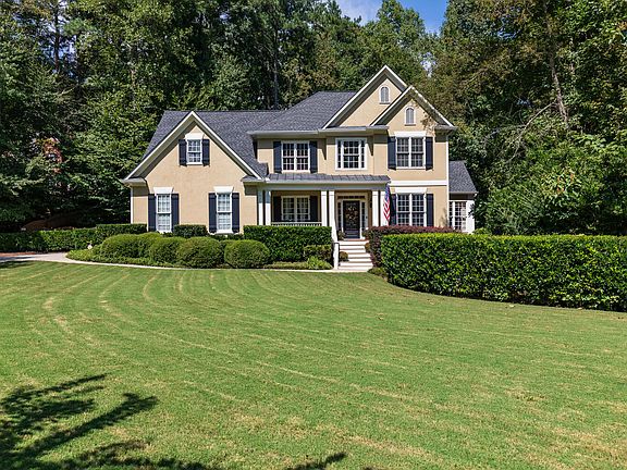 Welcome Home! This beautifully maintained home is located in the Nichols Creek Swim/Tennis neighborhood and sits at the base of Sawnee Mountain. The neighborhood has a private lake, pool, tennis, playground, single basketball court, and a private nature trail that connects to the Sawnee Mountain Park trails. If you are a nature lover this home is for you! Almost an acre of privacy offers wooded views, 3 private covered porches, a flagstone patio and fire pit. It is like coming home to your very own private RETREAT, yet close to dining, shopping and top rated schools. Features include: Welcoming front porch, two story family room, separate living room with French doors, separate dining room with shiplap wall, fabulous updated Chef's kitchen with custom cabinets, granite counters, new pendant lighting and a large breakfast area - all open to the large great room with fireplace. Hardwood floors are on main level AND upstairs! Upstairs features 3 spacious bedrooms and tiled bath, Amazing Owner's suite with a separate sitting area, its own private, covered porch and the fully renovated Owner's bath has travertine tiles, soaking tub, HUGE shower, walk in closet and double sinks. Finished terrace level is the perfect man cave or extra family hangout - game room, media area, full bath, fireplace and private exit to the patio and firepit. Newer roof, gutters, HVAC - this home is Move in Ready!