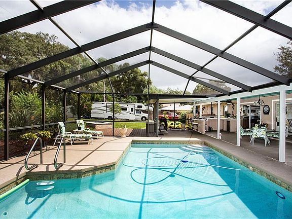 IMMACULATE HOME, Nestled on a fantastic property.If you are looking for a large property THIS IS IT!! A sparkling pool and outdoor kitchen, opens to a huge back yard, fully fenced (Everyone will love to throw the football around) backs up to 5 acres of woodlands. Bring your recreation toys (RV's, boats ATV's etc)along, plenty of room for them on this property, no restrictive HOA's or CDD'sTruly move in ready!! Don't be deceived by the posted square footage, this home is designed well, the home looks and feels much larger, the builder has made very good use of the space.The rooms are spacious, with lots of natural light. Master bathroom has custom cabinets and individual sinks and Granite counters. The second bath features a pedestal sink, and beautiful tiled floors.The dream Kitchen offers custom cabinetry, granite counter tops,the breakfast bar offers ample additional seating.Gleaming stainless appliances and a walk-in pantry complete the package. This kitchen will delight the most ardent cooks and chefs!This fine home is located on a very quiet semi circular street in a lovely treed area. Easy access to Tampa and major highways.